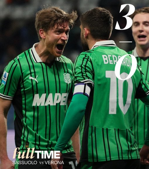 Η Σασουόλο συνέχισε την εντυπωσιακή της πορεία, επικρατώντας άνετα με 3-0 της Βερόνα και σημειώνοντας την τέταρτη νίκη της στα πέντε τελευταία παιχνίδια, διατηρώντας ζωντανά τα όνειρα ευρωπαϊκής εξόδου.