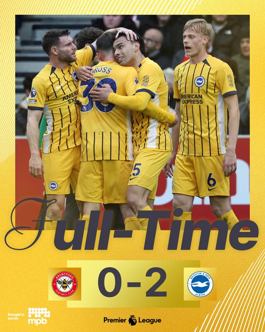 Την ίδια ώρα, η Μπράιτον πέρασε με 0-2 από την έδρα της Μπρέντφορντ, σε μια βραδιά με ιστορικό χαρακτήρα, καθώς ο Τζέιμς Μίλνερ έφτασε τις 654 συμμετοχές στην Premier League, επίδοση-ρεκόρ. Οι «γλάροι» ήταν ανώτεροι, άνοιξαν το σκορ στο 30’ με τον Ντιέγκο Γκόμεζ και «κλείδωσαν» τη νίκη πριν το ημίχρονο με τον Ντάνι Γουέλμπεκ. Στο δεύτερο μέρος ο ρυθμός έπεσε, με τη Μπρέντφορντ να χάνει μεγάλη ευκαιρία στο 76’.