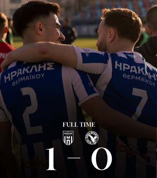 Σπουδαία νίκη με 1-0 πανηγύρισε ο Ηρακλής Θερμαϊκού απέναντι στη Δόξα Δράμας, μία αγωνιστική πριν το φινάλε της κανονικής διάρκειας στον 1ο όμιλο της Γ’ Εθνική.