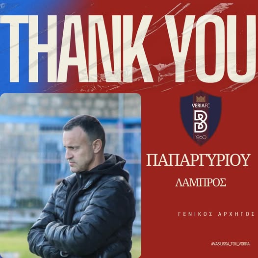 Τίτλοι τέλους στη συνεργασία της Βέροιας με τον Λάμπρο Παπαργυρίου, ο οποίος μέχρι πρότινος εκτελούσε χρέη γενικού αρχηγού. Είναι η δεύτερη αποχώρηση από το τεχνικό team μετά τον προπονητή, Δημήτρη Πρίντζιο.