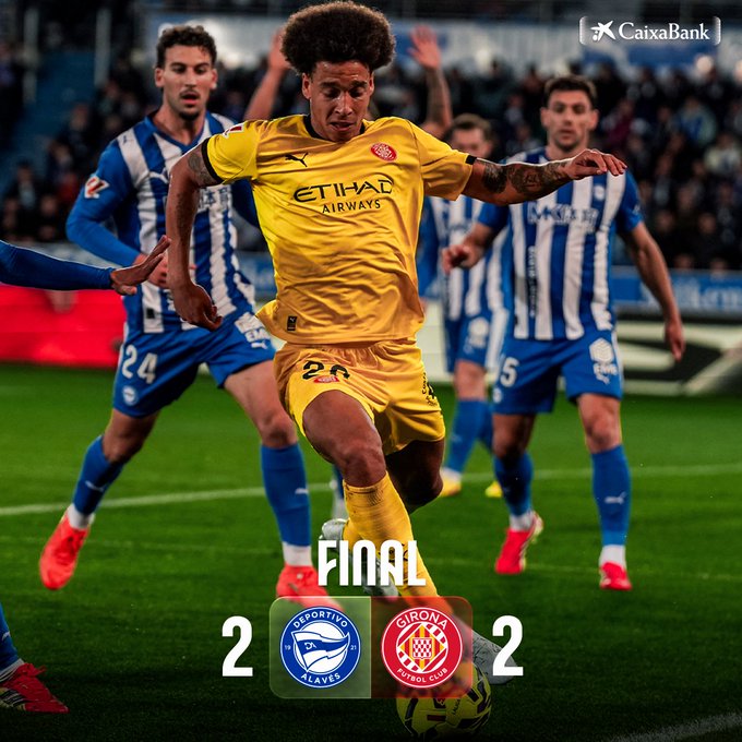 Σε ένα ματς με ένταση και ανατροπές, Αλαβές και Χιρόνα μοιράστηκαν βαθμούς και εντυπώσεις (2-2) στο φινάλε της 25ης αγωνιστικής. Οι γηπεδούχοι άνοιξαν το σκορ μόλις στο 5’ με τον Λούκας Μπογέ, όμως η Χιρόνα αντέδρασε και ισοφάρισε στο 31’ με τον Βανάτ μετά από κόρνερ. Στην επανάληψη οι Καταλανοί γύρισαν το παιχνίδι στο 73’ με τον Τσιγκάνκοφ, δείχνοντας έτοιμοι για το «διπλό».
