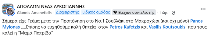 Το post της ομάδας :