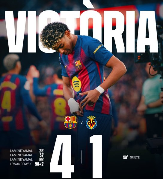 Η Μπαρτσελόνα συνέχισε μόνη πρώτη στη LaLiga, επικρατώντας με 4-1 της Βιγιαρεάλ, χάρη σε ένα μαγικό απόγευμα του Λαμίν Γιαμάλ. Ο νεαρός επιθετικός άνοιξε το σκορ στο 27’ με πλασέ από δεξιά και στο 37’ διπλασίασε τα τέρματα με άπιαστο αριστερό σουτ. Παρά την προσωρινή μείωση σε 2-1 από τον Γκέιγ στο 48’, η Μπαρτσελόνα επέβαλε τον ρυθμό της, με τον Γιαμάλ να βρίσκει ξανά τον δρόμο προς τα δίχτυα στο 70’ και τον Λεβαντόφσκι να διαμορφώνει το τελικό 4-1 στο 90+1’. Η νίκη κρατά την ομάδα στο +4 από τη Ρεάλ, που αντιμετωπίζει τη Δευτέρα τη Χετάφε.