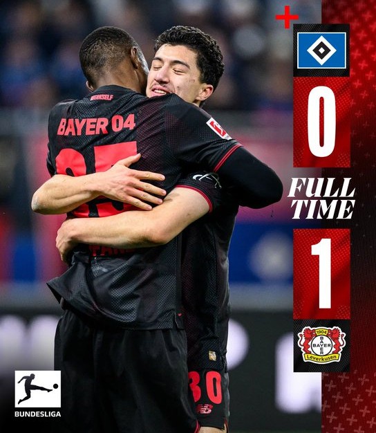 Το πρώτο μέρος είχε καλό ρυθμό, με τους φιλοξενούμενους να αγγίζουν το γκολ στο 12’, όταν ο Τεριέ σημάδεψε το δοκάρι. Στην επανάληψη η Λεβερκούζεν πίεσε περισσότερο και τελικά βρήκε τη λύση, ενώ το Αμβούργο αντέδρασε στα τελευταία λεπτά. Στις καθυστερήσεις χάθηκαν τεράστιες ευκαιρίες για τους γηπεδούχους, με τον Βούσκοβιτς να σημαδεύει το δοκάρι στο 98’ και τον Μπλάσβιχ να πραγματοποιεί σωτήριες επεμβάσεις.