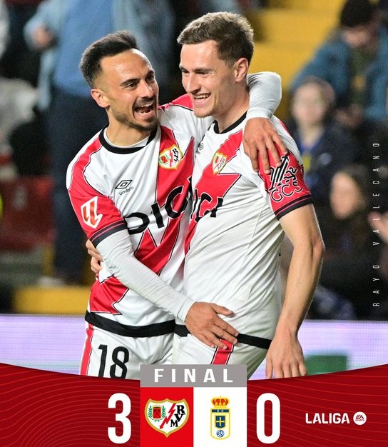 Η Ράγιο Βαγιεκάνο επέβαλε πλήρως τον ρυθμό της και επικράτησε με 3-0 της Οβιέδο, σε εξ αναβολής αναμέτρηση της 23ης αγωνιστικής της LaLiga.