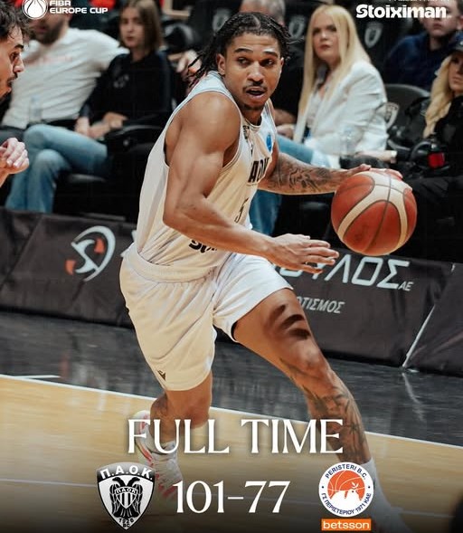 Με επιβλητική εμφάνιση και κυριαρχία από τα πρώτα λεπτά, ο ΠΑΟΚ επικράτησε με 101-77 του Περιστερίου στον πρώτο προημιτελικό του FIBA Europe Cup, αποκτώντας σημαντικό προβάδισμα ενόψει της ρεβάνς.