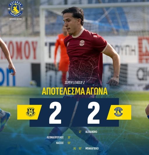 Ισόπαλο 2-2 έληξε το παιχνίδι της 5ης αγωνιστικής των play off στον 1ο όμιλο της Super League 2 ανάμεσα στην Αναγέννηση Καρδίτσας και τον Αστέρα AKTOR B, με την ομάδα της Καρδίτσας να χάνει την ευκαιρία για την πρώτη της νίκη.