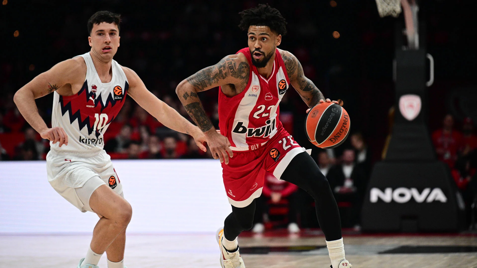 Η Μπασκόνια αποδείχθηκε ανταγωνιστική για μεγάλο διάστημα, με τον Ομορούγι να ξεχωρίζει επιθετικά, όμως στο δεύτερο ημίχρονο ο Ολυμπιακός ανέβασε την απόδοσή του και πήρε σταδιακά τον έλεγχο. Οι Πειραιώτες βελτίωσαν την αποτελεσματικότητά τους, κυρίως κοντά στο καλάθι, με τον Νίκολα Μιλουτίνοβ να κυριαρχεί στη ρακέτα και να δίνει λύσεις, ενώ ο Τζόουνς πρόσθεσε ενέργεια και σκορ.