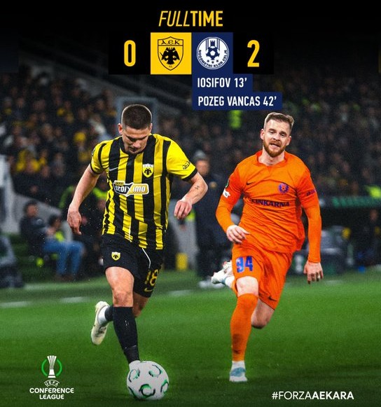 Με ήττα ολοκλήρωσε την προσπάθειά της στη ρεβάνς των «16» του Conference League η ΑΕΚ, όμως το εμφατικό 0-4 του πρώτου αγώνα στη Σλοβενία αποδείχθηκε αρκετό για να της χαρίσει την πρόκριση στα προημιτελικά της διοργάνωσης. Η «Ένωση» γνώρισε την ήττα με 0-2 από την Τσέλιε στη Νέα Φιλαδέλφεια, αλλά δεν απειλήθηκε ουσιαστικά σε επίπεδο πρόκρισης.
