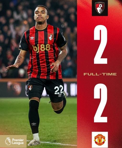 Σε ένα παιχνίδι με έντονο ρυθμό και δραματικό φινάλε, η Μπόρνμουθ αναδείχθηκε ισόπαλη 2-2 με τη Μάντσεστερ Γιουνάιτεντ για την 31η αγωνιστική της Premier League.