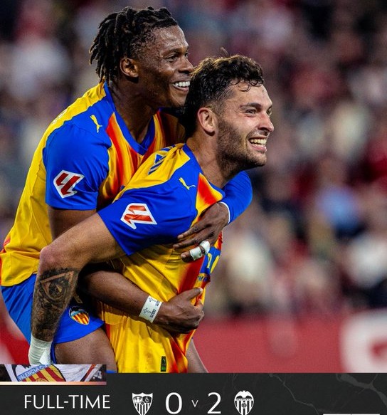Σπουδαία εκτός έδρας νίκη πέτυχε η Βαλένθια, επικρατώντας 2-0 της Σεβίλλης στο «Σάντσεθ Πιθχουάν» και παίρνοντας βαθιά βαθμολογική ανάσα. Οι «νυχτερίδες» καθάρισαν το ματς από το πρώτο ημίχρονο, με τον Ούγκο Ντούρο να ανοίγει το σκορ στο 38’ και τον Ραμαζάνι να διαμορφώνει το 0-2 στις καθυστερήσεις. Στην επανάληψη, η Σεβίλλη πίεσε, όμως ο Ντιμιτριέφσκι κράτησε το μηδέν, χαρίζοντας πολύτιμο τρίποντο που φέρνει τη Βαλένθια στους 35 βαθμούς.