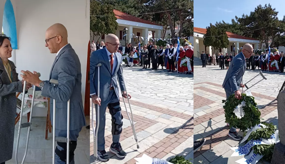 Ιδιαίτερα φορτισμένη συναισθηματικά ήταν η παρουσία του δημάρχου Αγίου Ευστρατίου, Κωνσταντίνου Σινάνη, στις εκδηλώσεις για την Εθνική Επέτειο της 25ης Μαρτίου, στέλνοντας μήνυμα δύναμης και αισιοδοξίας προς τους κατοίκους του νησιού.