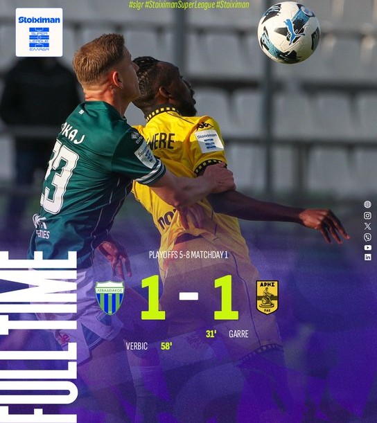 Σε ένα ματς με ένταση, φάσεις και έντονα παράπονα για τη διαιτησία, Λεβαδειακός και Άρης αναδείχθηκαν ισόπαλοι 1-1 στη Λιβαδειά, στην πρεμιέρα των play off 5-8 της Super League.