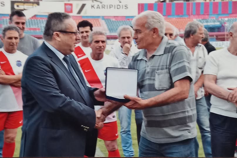 Φωτο: Ο Π. Μιχαηλίδης απονέμει τιμητική πλακέτα στον Γ. Μουρτζίλα,15-05-2017 στο γήπεδο της Βέροιας στον αγώνα μεταξύ των Παλαιμάχων, ΒΕΡΟΙΑ-ΠΑΟΚ.”