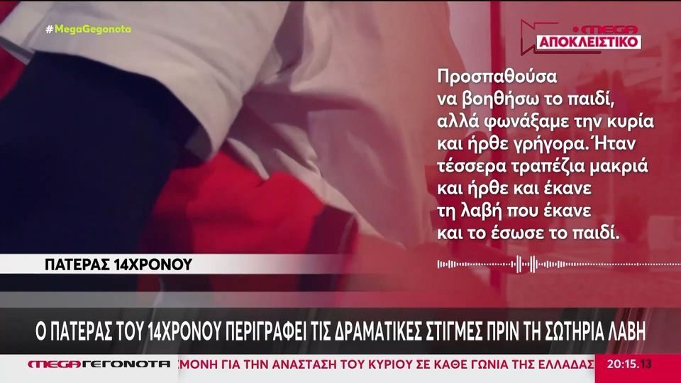 «Το παιδί μόλις ήρθαμε έφαγε την πρώτη μπουκιά, του φράκαρε στο στόμα και εκεί έγινε ο πνιγμός», ανέφερε χαρακτηριστικά, περιγράφοντας το περιστατικό.