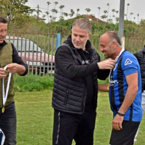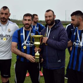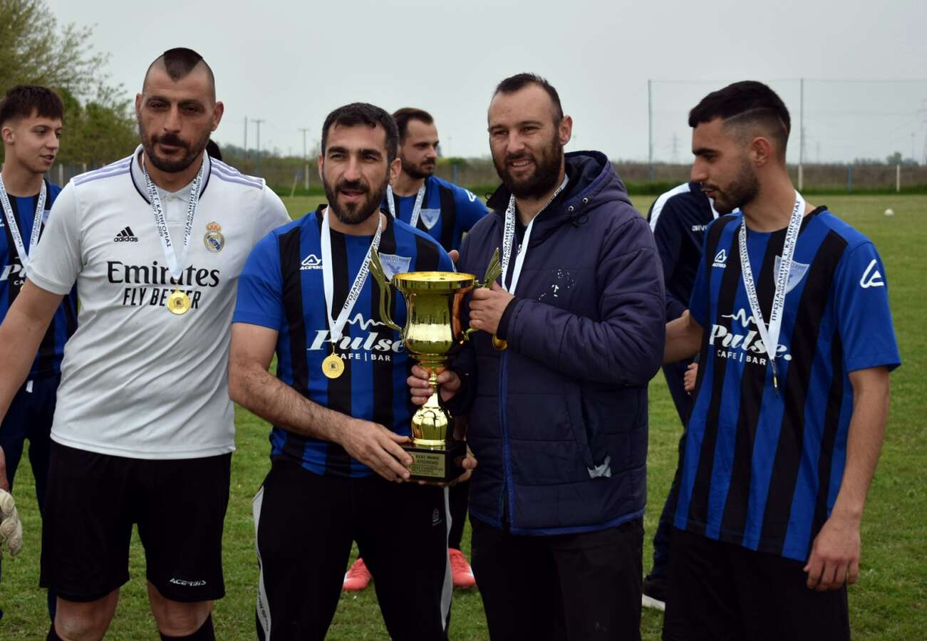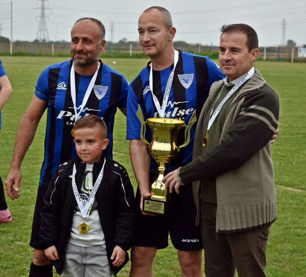 Η κορύφωση της βραδιάς ήρθε με την απονομή του Κυπέλλου από τον πρόεδρο της ΕΠΣ Ημαθίας, Στέργιο Μουρτζίλα. Διοίκηση και ποδοσφαιριστές παρέλαβαν τα μετάλλιά τους και πανηγύρισαν με ενθουσιασμό, θυμίζοντας μικρά παιδιά στη θέα του τροπαίου.