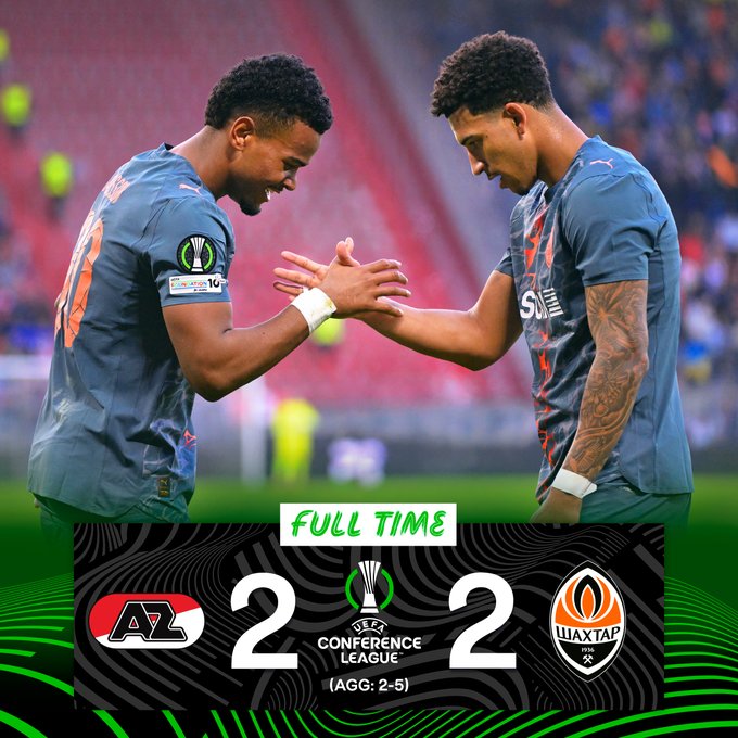 Η Σαχτάρ Ντόνετσκ έγινε η πρώτη ομάδα που εξασφάλισε την πρόκριση στα ημιτελικά του Conference League, αποσπώντας ισοπαλία 2-2 στην έδρα της Άλκμααρ και «σφραγίζοντας» το εισιτήριο με συνολικό σκορ 5-2.