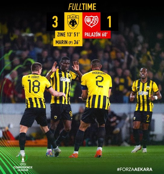 Στα τελευταία λεπτά, η ΑΕΚ τα έπαιξε όλα για όλα, γεμίζοντας την επίθεση και ψάχνοντας το γκολ που θα την κρατούσε ζωντανή. Η Ράγιο απείλησε μάλιστα στο φινάλε, με τον Ντε Φρούτος να σημαδεύει το δοκάρι, σε μια φάση που θα μπορούσε να αλλάξει ακόμη περισσότερο την εικόνα του αγώνα.