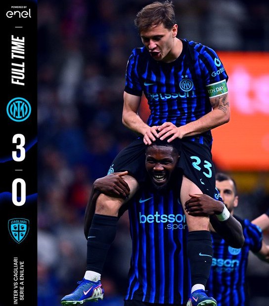 Η Ίντερ επικράτησε με 3-0 της Κάλιαρι για την 33η αγωνιστική της Serie A και έκανε ακόμη ένα καθοριστικό βήμα προς την κατάκτηση του τίτλου, αυξάνοντας τη διαφορά της στο +12 από τη Νάπολι.