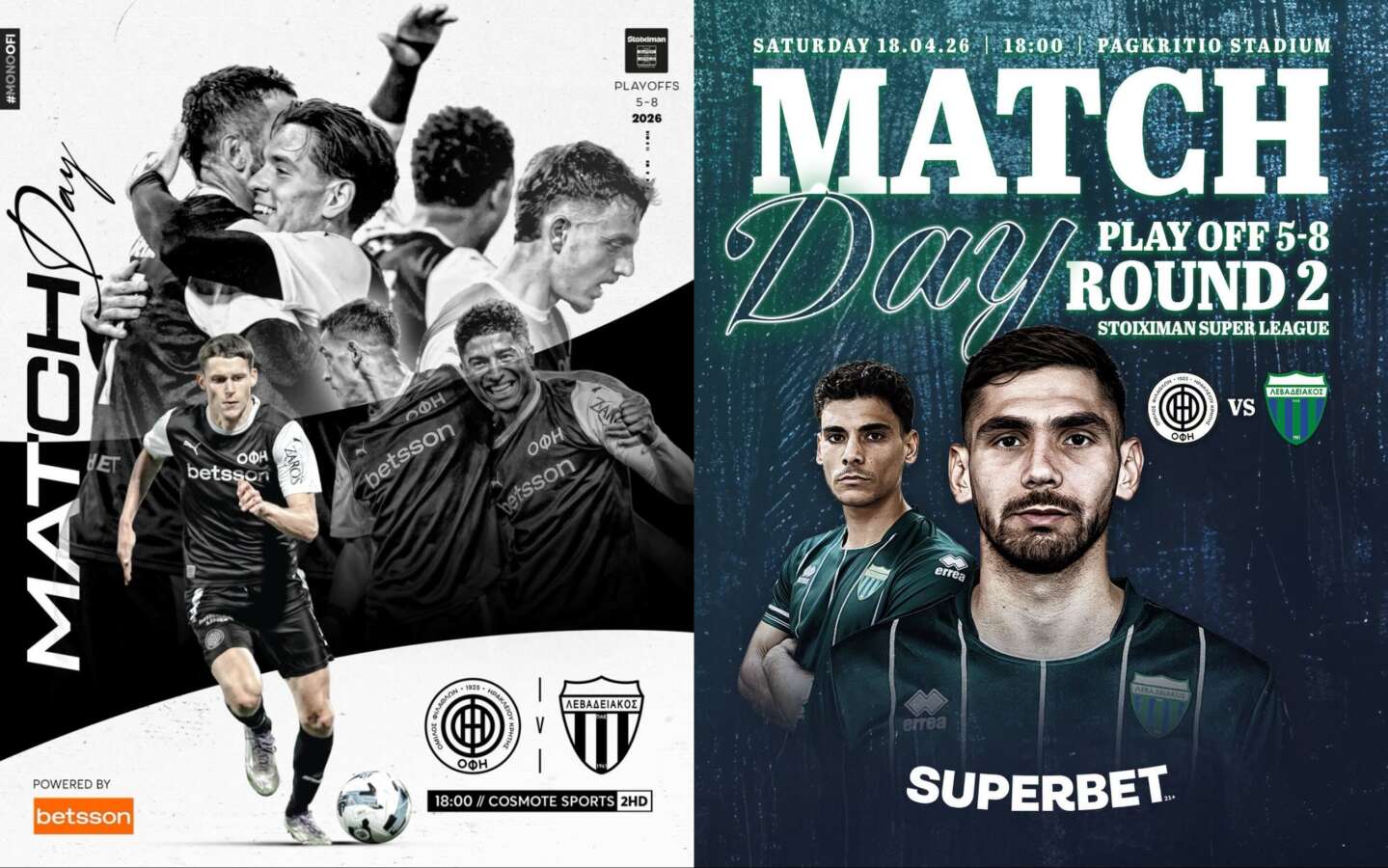 Μπορεί να είναι εικόνα φούτμπολ και κείμενο που λέει "SATURDAY 18. 18.04.26 18:001 PAGKRITIO STADIUM STARTING ജസ്ാൽസ PLAYOFT5-8 PLAY ROUND2 2| STOIXIMAN SUPER LEAGUE STARTERS LODYGIN .TSAPRAS VIHOS TSIVELEKIDIS LIAGKAS COKAJ KOSTI BALZI VERBIC PALACIOS OZBOLT BENCH ANACKER ·KORNEZOS LAYOUS NIKAS MANTHATIS PEDROZO LAMARANA SYMELIDIS MAGNUSSON OZEGOVIC PAPADOPOULOS GKOUMAS ΛΕΒΑΔΕΙΑΚΟΣ VS OФH SUPERBET 124"