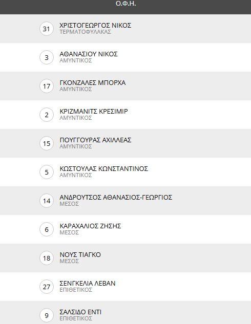 Οι 11άδες στο ΟΦΗ – Λεβαδειακός (18.00)