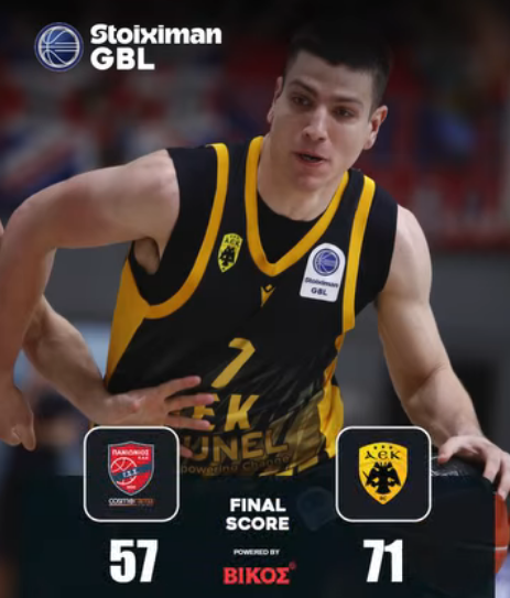 Η ΑΕΚ επέβαλλε στην Γλυφάδα στην αναμέτρηση με την οποία ολοκληρώθηκε η 25η αγωνιστική της κανονικής περιόδου της GBL από την πρώτη περίοδο τον ρυθμό της, επικράτησε του Πανιωνίου (71-57) λίγες ημέρες μετά την πρόκριση της στο Final Four του Basketball Champions League και παραμένει στην 3η θέση της βαθμολογίας.