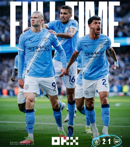 Στο δεύτερο μέρος, ο Χάαλαντ ανέλαβε δράση και στο 65’ διαμόρφωσε το τελικό 2-1 με δυνατό τελείωμα, έχοντας νωρίτερα σημαδέψει και το δοκάρι. Οι «κανονιέρηδες» πίεσαν στο φινάλε, δημιούργησαν ευκαιρίες και είχαν δοκάρια, όμως δεν κατάφεραν να σκοράρουν.
