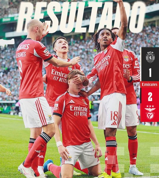 Με γκολ του Ράφα Σίλβα στις καθυστερήσεις, η Μπενφίκα πέρασε με 2-1 από την έδρα της Σπόρτινγκ Λισαβόνας στο «Ζοσέ Αλβαλάδε», στο μεγάλο ντέρμπι της Λισαβόνας, παίρνοντας πολύτιμο τρίποντο στη μάχη για τη 2η θέση και την έξοδο στο Champions League.