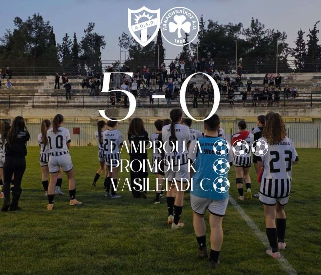 ΑΟ Αγίας Παρασκευής – Παναθηναϊκός 5-0 (3′-14′-72′ Λάμπρου, 40′ Πρώιμου, 45′ Βασιλειάδη) [3-0]
