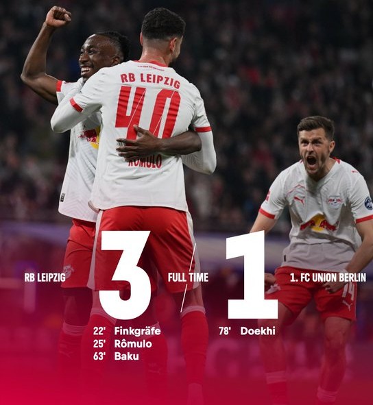 Αποφασιστικό βήμα για την έξοδο στο Champions League έκανε η Λειψία, επικρατώντας με 3-1 της Ουνιόν Βερολίνου και φτάνοντας τις πέντε σερί νίκες.