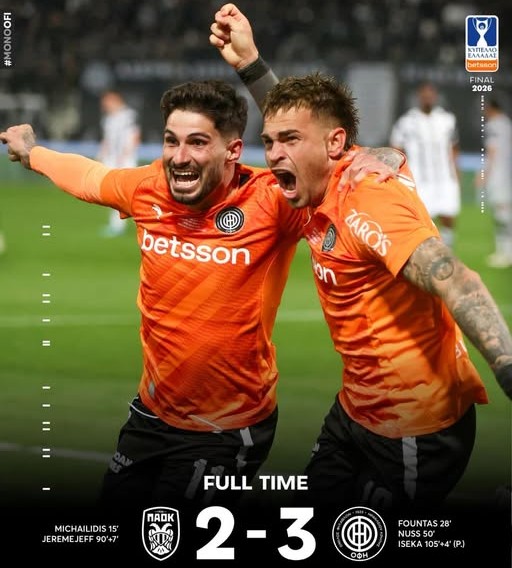 ΟΦΗ : Κυπελλούχος Ελλάδας σε τελικό έπος – Κέρδισε τον ΠΑΟΚ στην παράταση και έγραψε ιστορία! (vids) Σήμερα στις 23:28