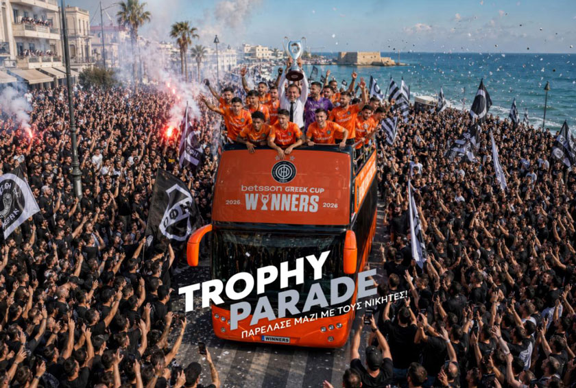 Η μεγάλη στιγμή έφτασε! Οι θριαμβευτές του Βόλου επέστρεψαν στο νησί και το Ηράκλειο βγαίνει στους δρόμους για να αποθεώσει τους νικητές του Κυπέλλου Ελλάδας 2026!