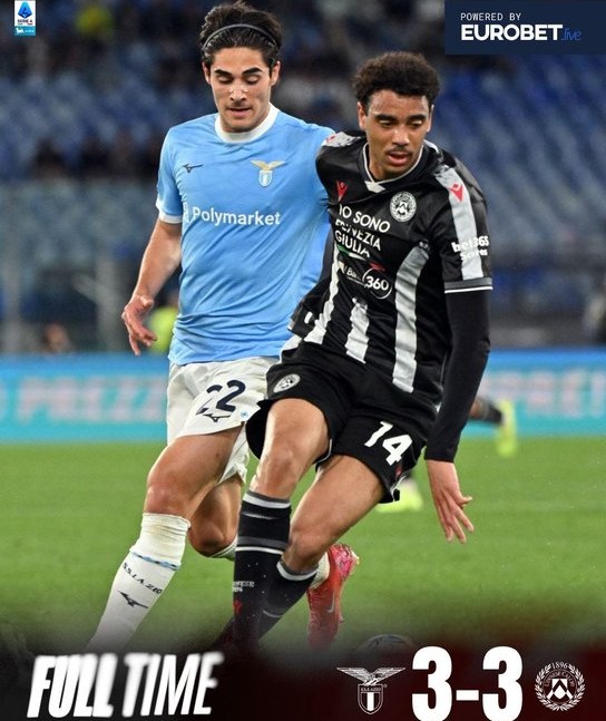 Ένα από τα πιο εντυπωσιακά παιχνίδια της αγωνιστικής διεξήχθη στη Ρώμη, με τη Λάτσιο και την Ουντινέζε να μένουν στο 3-3, σε μια αναμέτρηση γεμάτη ένταση, ρυθμό και συνεχείς ανατροπές μέχρι το τελευταίο σφύριγμα.