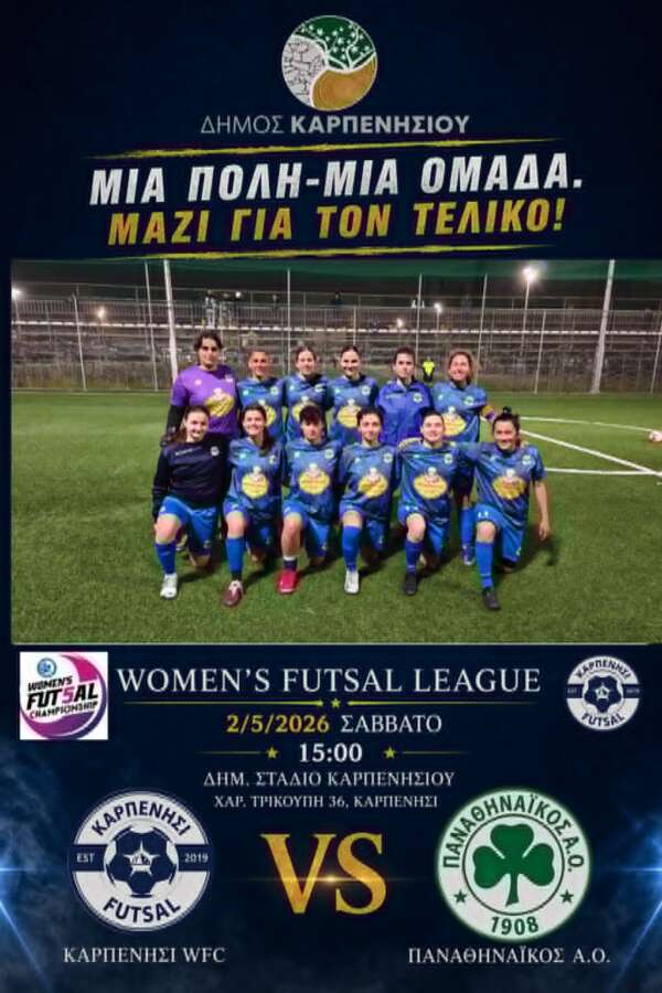 Σε ρυθμούς… τελικού κινείται το Καρπενήσι, με τη γυναικεία ομάδα Futsal να βρίσκεται μια «ανάσα» από μια ιστορική πρόκριση. Μετά τη σπουδαία νίκη με 2-4 απέναντι στον Παναθηναϊκό εκτός έδρας, οι αθλήτριες ετοιμάζονται για τον δεύτερο ημιτελικό, που θα διεξαχθεί το Σάββατο 2 Μαΐου στις 15:00 στο Δημοτικό Στάδιο Καρπενησίου.