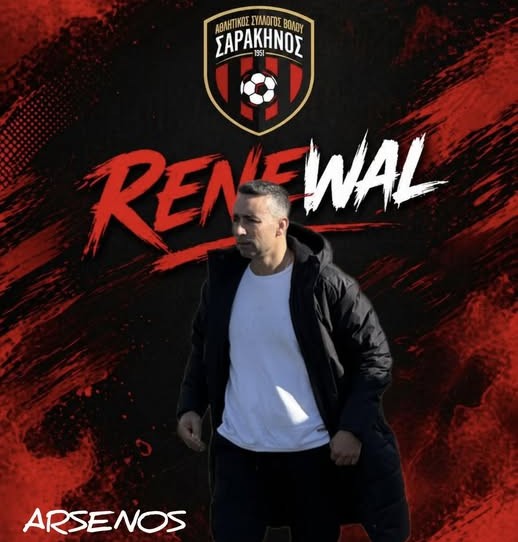 “Ο Α.Σ. Σαρακηνός βρίσκεται στην ευχάριστη θέση να ανακοινώσει την ανανέωση της συνεργασίας με τον προπονητή Στέλιο Αρσένο.